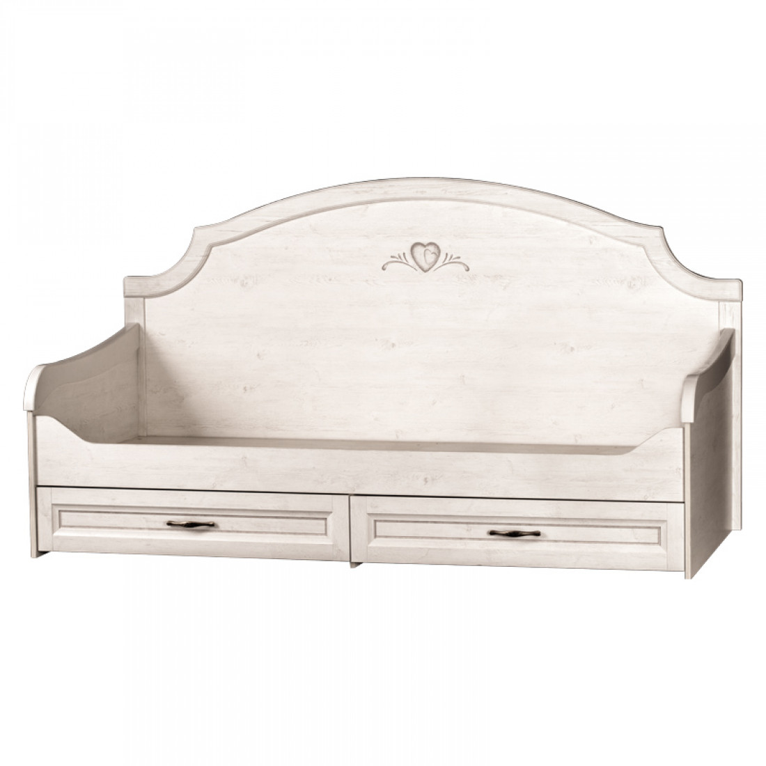 Корпус: ДСП, декор – сосна белая. Основание кровати – ламели