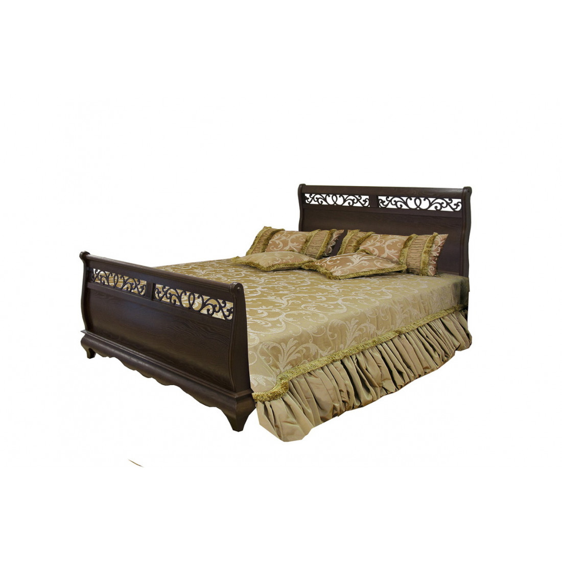 Классическая двуспальная кровать с высокими резными спинками из коллекции мебели для спальни "Оскар". Дизайн модели отличается выгнутой формой спинок и изящной ажурной резьбой с растительным мотивом. Спальное место 1600х2000 . Выполнена из массива и шпона дуба, окрашена в оттенок "Орех".