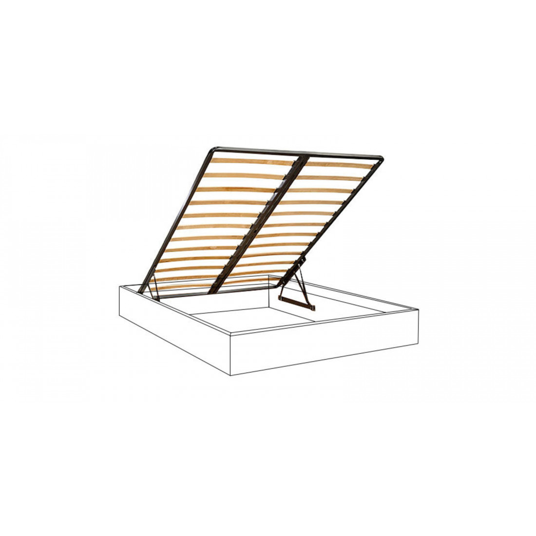 Наряду с подъемным механизмом в кровать встроены ортопедическое основание и вместительный короб для хранения постельных принадлежностей.