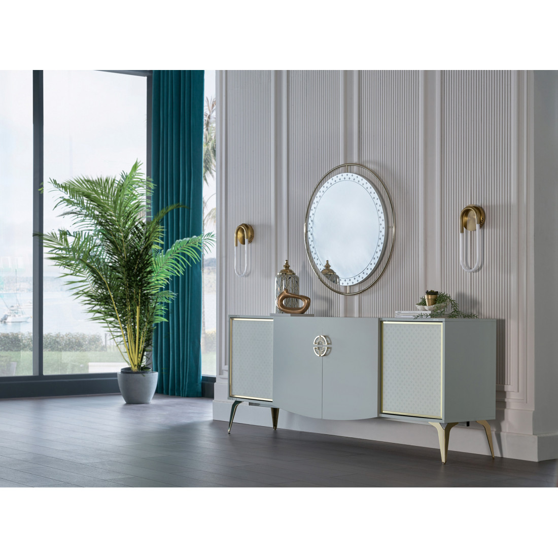 Узоры на стекле буфета, отражающюют стиль АРТ-ДЕКО.