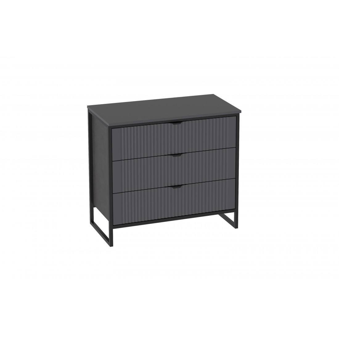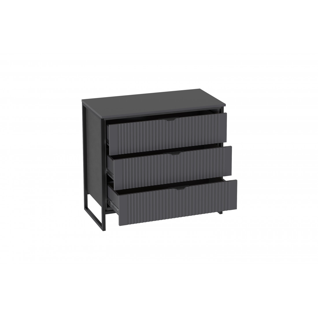 Комод "Нора" на металлокаркасе состоит из трех выдвижных ящиков на шариковых направляющих, что позволяет удобно хранить вещи и поддерживать порядок в комнате. Он выполнен из безопасных, качественных материалов (лдсп и мдф), что гарантирует долговечность и сохранение первоначального вида на протяжении долгого времени.