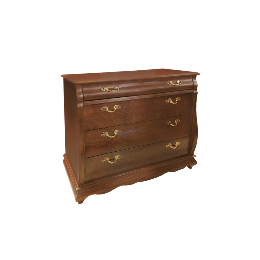 Классический широкий комод для спальни из коллекции "Оскар" это оптимальный вариант для комнаты любого размера. Он вместителен, удобен и хорошо смотрится в интерьере. Слегка выгнутые формы и растительный узор фурнитуры подчеркивают его общий с остальными предметами коллекции стиль. Фасад выполнен из массива дуба, выдвижные ящики на направляющих. Модель окрашена в оттенок "Орех".