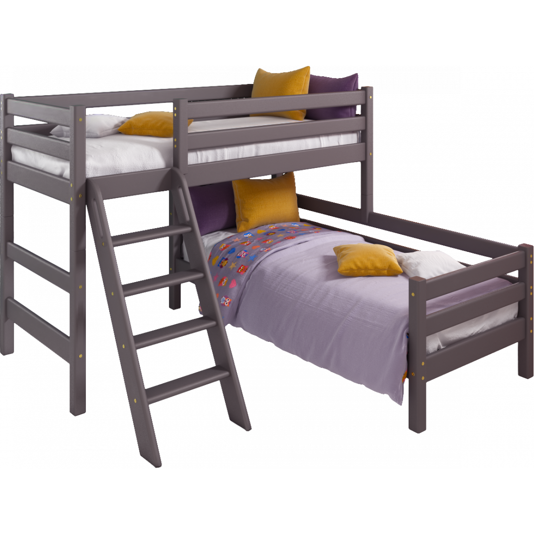 Кровать Соня Лаванда угловая вариант 8 с наклонной лестницей