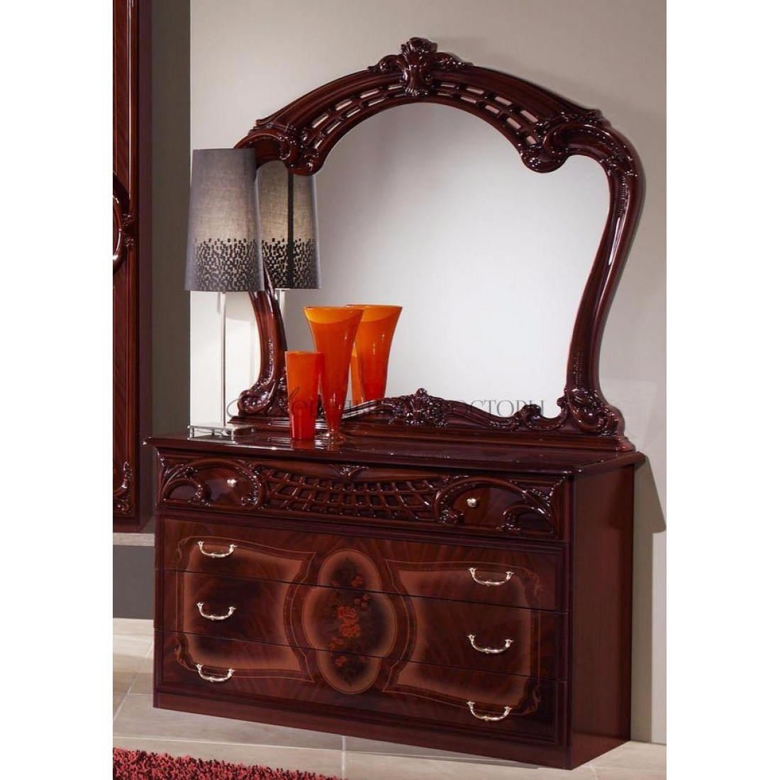 Спальня Роза (могано) от Российской фабрики "ДИА мебель". Выполнена в классическом стиле. Такая спальня коллекции Роза порадует Вас своим дизайном и многофункциональностью. Цвет могано в сочетании с глянцевым покрытием и орнаментом на фасадах, придает этой модели еще изысканности и подчеркивает прекрасное чувство стиля своего владельца. Поможет насладиться прекрасным вечером после трудного дня.