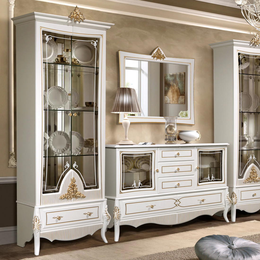 Зеркало в гостиную Стелла (белый золото)